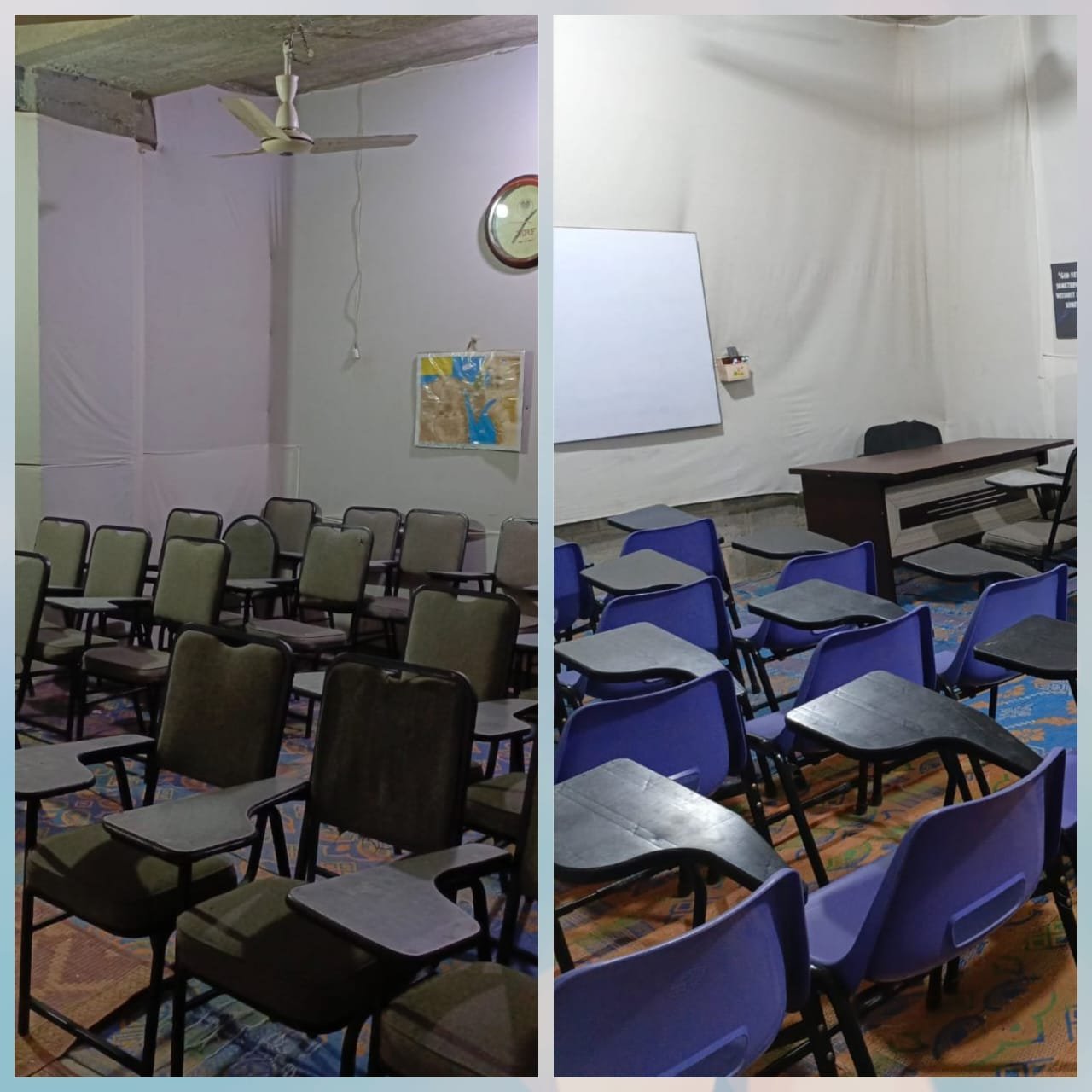 Classroom 1 and Classroom 2 each accommodate up to 50 students, providing ample space for interactive learning and engaging classroom setup . Equipped with individual comfortable chairs, these classrooms create a conducive environment for both lecture-based teaching and collaborative learning.